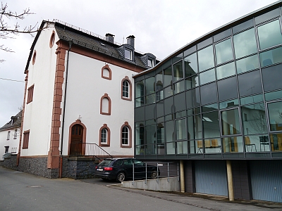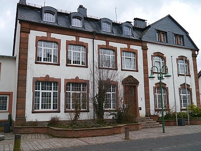 Das Verwaltungsgebäude wurde 1908/09 erbaut und hatte im hinteren Teil als Nebengebäude Stall und Scheune. Diese landwirtschaftlichen Gebäude wurden Anfang der 1960er Jahre abgerissen und durch einen zweistöckigen Verwaltungsanbau ersetzt. Vermutlich ist bei diesem Umbau auch das schöne Sandsteinportal mit dem Dauner Wappen angebracht worden. Das vordere Gebäude mit dem angesetzten Treppenhaus (Nebeneingang) war seit 1909 Verwaltungsgebäude für das Amt Daun; die ehemaligen Ämter Dockweiler und Sarmersbach wurden seit den 1930er Jahren von Daun aus mitverwaltet und später aufgelöst. Nach der Verwaltungsreform 1970/71 wurde ein Neubau für die neue, größere Verbandsgemeindeverwaltung Daun (mit den ehemaligen Verbandsgemeinden Gillenfeld und Niederstadtfeld) angebaut. Dieser Teil wurde nach 2005 um ein drittes Geschoss und einem Verbindungsgang ergänzt und mit dem Altbau verbunden. [2]