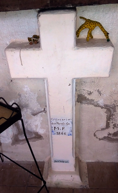 Im Inneren der Kapelle steinernes Wegekreuz.
