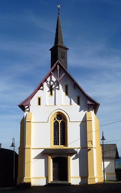 „Eine bedeutende Verschönerung hat Prostrath durch die neuerbaute Kapelle erlangt. Im Nachsommer des Jahres 1887 regte Herr Pfarrer Heimes von Beuren den Neubau einer Kapelle an und zwar mit dem besten Erfolge. Im nächsten Winter wurden dann die Bausteine gegraben und angefahren. Am 23. April 1888 wurde mit dem Ausgraben der Fundamente begonnen und am 21. Mai der Grundstein gelegt. Der Bauplan wurde von dem Baumeister Staats aus Köln angefertigt und die Leitung des Baues dem Bauunternehmer Mendgen aus Trier übertragen. Die Kapelle kam noch vor Winter unter Dach. Am 2. September 1889 fand die Einsegnung statt. Im Sommer 1890 wurde die Kapelle durch den Dekorationsmaler Stoffels aus Trier gemalt. Der Bau an sich, sowie die Ausstattung im Innern sind im gotischen Stile ausgeführt. Die Kapelle ist recht schön.“ [2]