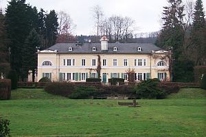 Zwischen Schneidershof und Wildgehege circa 500 Meter nordwestlich der Villa Weißhaus liegt in malerischer Umgebung das Drachenhaus, ein auffälliger, langgestreckter Bau, der ehemals das Ökonomiegebäude des Gutes Weißhaus war. An seiner Stelle stand bis um 1829 das sog. Mergener Grünhäuschen, ein kleines Hofgut, das ehemals dem Kloster Sankt Marien (heute Exzellenzhaus) gehörte. Grünhäuschen und Weißhäuschen wurden um 1819 vom Trierer Bürgermeister Wilhelm v. Haw (1783-1862) erworben. Sechs Jahre nach Errichtung der klassizistischen Weißhausvilla, entstand im Jahre 1829 das dazugehörige Wirtschaftsgebäude Drachenhaus. Seinen Namen verdankt es zwei imposanten geflügelten Kupferdrachen, die allerdings erst Jahre nach Fertigstellung des Gebäudes an den Eckrisaliten der Fassade aufmontiert wurden. Sie stammen von einem Trierer Stadthaus in der Simeonstraße, wo sie als Wasserspeier fungiert hatten. Nach dem Tod. Haws im Jahr 1862 wurde das Gut Weißhaus vom Statthalter des Großherzogtums Luxemburg, Prinz Heinrich der Niederlande, erworben. Er veranlasste die Umfunktionierung des Ökonomiegebäudes in ein Wohnhaus für den Förster. Heute ist das Drachenhaus ein Mietshaus der Stadt Trier.