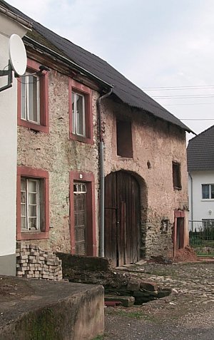 Schieferbau aus zweiachsigem Wohnteil mit Kellerabgang neben dem Hauseingang. Das Haus hat viele Datails bewahrt: Fenster, Kassettentüre, Hoffläche). Das derzeit (2000) unbewohnte Anwesen hat Zeugniswert für den historischen, ehemals ortsbildprägenden Haustyp. [1]