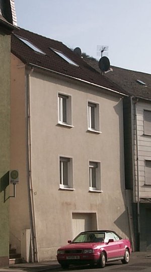 Die Nord -, Südansicht wird jeweils über zwei große Rundbogenfenster gegliedert. Die heutige Ostansicht zeigt keine Fenster. Dennoch ist anzunehmen, dass eine Belichtung - Sonnenfenster - gegeben war. Die Fassaden waren verputzt. Von der Strasse kommend führte am Westgiebel eine einläufige in Sandstein gearbeitete Podesttreppe zum circa 2,50 Meter höher gelegenem Eingang.