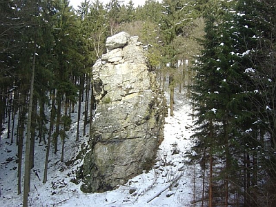 Quarzitfelsen, ca. 15 m hoch und 12 m breit. [1]