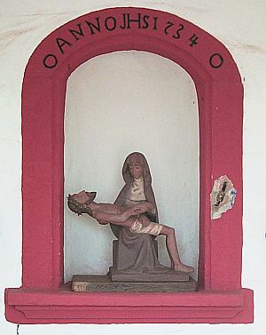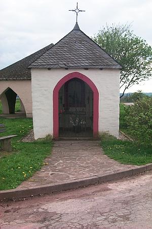 Auf hochgelegenem Aussichtspunkt stehende Wegekapelle unter schiefereingedecktem Zeltdach. Spitzbogiges Sandsteinportal, 1838 datiert. In der Sandsteinniesche im inneren 1734 datiert. Im inneren anstelle der spätgotischen Leuchtermadonna eine moderne Pietà. [1]