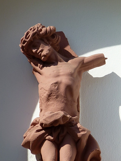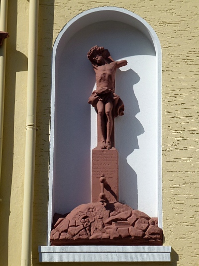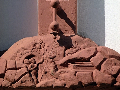 Kruzifix über reliefiertem Hügel, wohl barockzeitlich. [1]