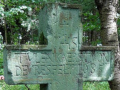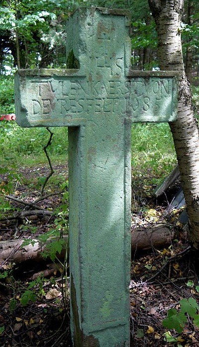 Es handelt sich offensichtlich um ein Totenkreuz mit der Aufschrift "Kaerst Thulen von Deur(d)esfeld 1685", der an dieser Stelle wohl starb oder umkam. Im Schnittpunkt des Kreuzes JHS.