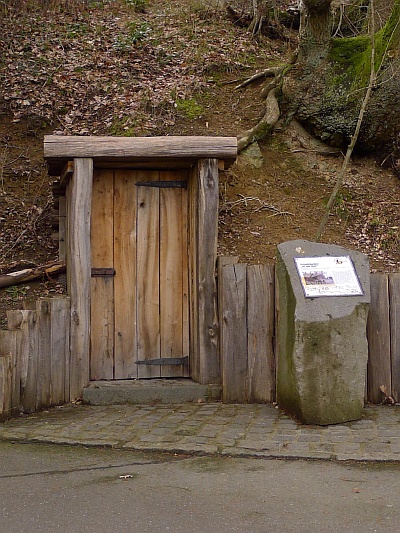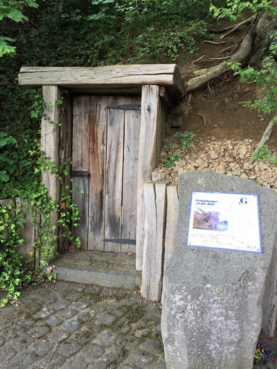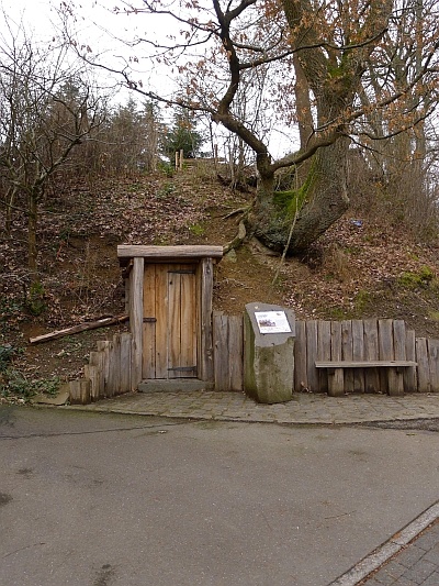 Am 16. Januar 1945 wurde Kelberg zu zwei Dritteln zerstört. Wer an diesem Tag die kleine Holztür mit dem verstärkenden "Z" erreicht hatte, fühlte sich sicher. Heute mahnt und erinnert die Rekonstruktion an die Opfer. [1]