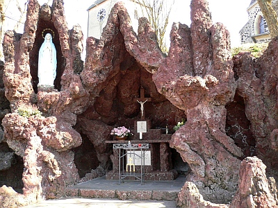 Am Kirchenaufgang ist aus Lavagrotzen eine Grotte zur Ehren der heiligen Mutter Gottes errichtet worden.In der größten Grotte steht ein Altartisch. [1]