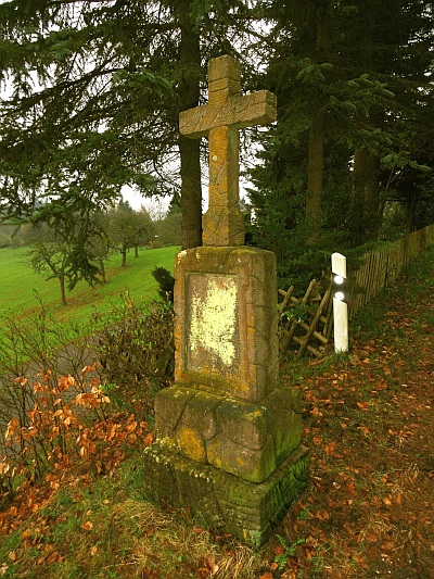 Ein Kreuz an der Straße Bad Bertrich – Bonsbeuren - Springiersbach. 100 m hinter der Kapelle, auf der linken Straßen Seite.