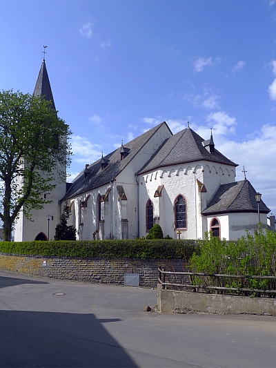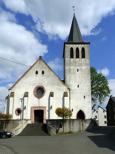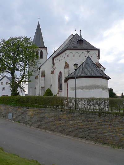 Von dem älteren Kapellenbau heißt es bei SCHANNAT-BÄRSCH: ..."über einem Bogen der Kirche ist die Jahreszahl 1528 in Stein gehauen." Seit dem Jahre 1701 ist sie selbständige Pfrarrkirche; im Jahre 1783 wird sie als baufällig bezeichnet. Neubau vom Jahre 1892 nach den Plänen des Architekten Krekler aus Prüm. [2]