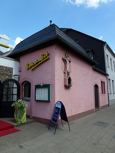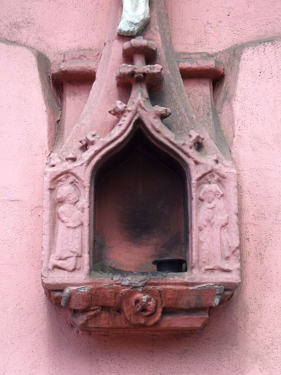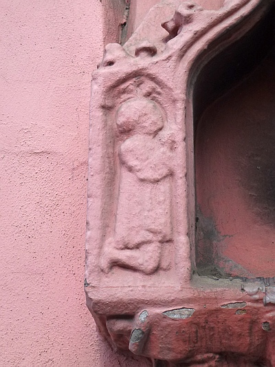 Zusammen mit dem Christus-Torso am Haus Benediktinerstraße 14 verweist dieser Bildstock auf den Weg, der von der Stadt zu dem untergegangenen Benediktinerkloster Sankt Maria ad Martyres hinführte. [1]