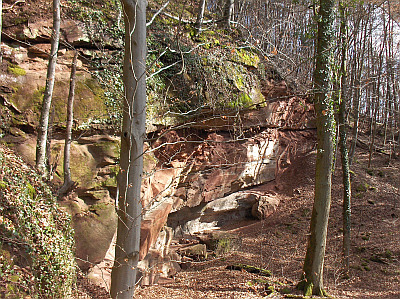 Unmittelbar unter dem [Eremitenfels] befindet sich linker Hand eine alte Eremitage. Dort soll bis Juli 1895 ein 82 jähriger Einsiedler gelebt haben, der dann auf mysteriöse Weise verschwand. (Quelle: Paulinusblatt vom 21. Juli 1895) Die rechteckigen Grundmauern und der halb verschütte Eingang der Eremitage, sowie weitere Treppen und Mauern aus Stein sind noch gut zu erkennen. [1]
