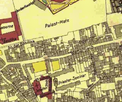 (Die Hinterstraße lag hinter der Stadtbibliothek in der Weberbach als Verlängerung der Straße Am Palastgarten. Quelle: Stadtplan von 1927. Anm. d. Red.)