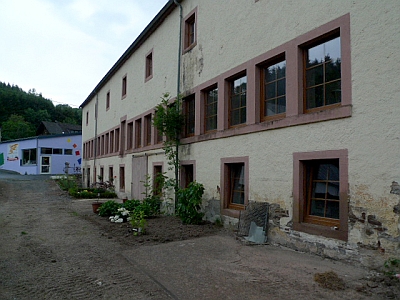 Von dem im 19. Jahrhundert durch die Gerberfamilie Grimbach am südlichen Prümufer unmittelbar neben der Brücke gegründeten Großbetrieb seit der Stilllegung im Jahr 1950 nur das um 1900 am nordwestlichen Ende der Hoffläche errichtete Gerbereigebäude äußerlich weitgehend unverändert erhalten.