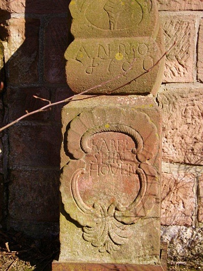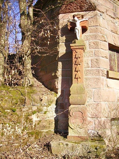 Südlich der Ortslage am Wasserhochbehälter. Wegekreuz; barock, Sefferner Typ, Rotsandstein, bezeichnet 1760. [1]
