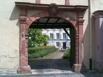 [...] Torhaus und abgewinkelte Seitenflügel wurden am Anfang des 17. Jahrhundert unter dem damaligen Bewohner Adolf Quadt von Buschfeld in Spätrenaissanceformen auf der südlichen Hofseite errichtet. Im östlichen Flügel ein von Pilastern gerahmtes Portal mit dem Baudatum 1603 und dem Ehewappen Quadt-Pallant. Auf einem Relief über einer 1736 bezeichneten Pforte des Westflügels findet sich das gleiche Wappen mit der 1604 datierten Inschrift CARPET QUIS CITIUS QUAM IMITETUR.