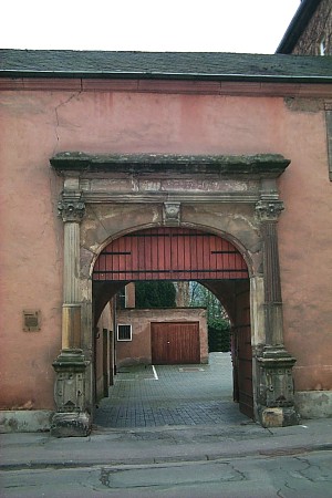 Renaissancebau mit Pfeilerarkaden und offener Galerie, Renaissance-Torfahrt; Torfahrt mit Inschriftplatte, nach 1806; unter Nr. 3 romanischer Keller, vor 1339; Nr. 4 dreigeschossiges Wohnhaus, Reformarchitektur, 1909, Architekt Peter Marx, Ausstattung. [1]
