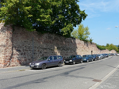 Merowingermauer, die die Immunität (Bezirk eigener Gerichtsbarkeit) der um 640 nach Christus gegründeten adeligen Benediktinerinnenabtei Sankt Irminen umschloss.