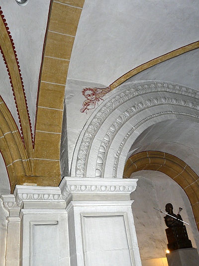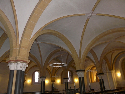Die spätromanische Ostkrypta erstreckt sich mit 2 x 3 kreuzgratgewölbten Jochen unter dem Chor und mit der selben Jochanzahl unter der polygonalen Apsis. Die Halle Vierpaßsäulen mit quadratischem Kern gegliedert. [1]