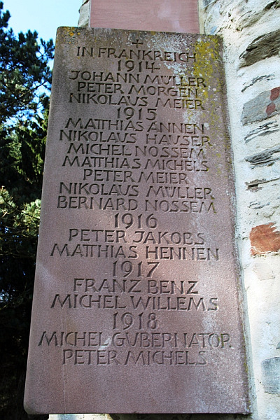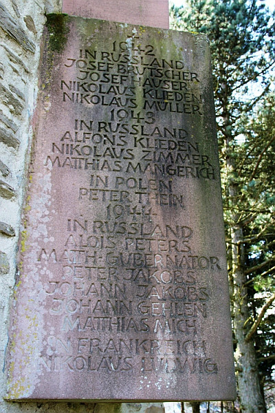 Auf dem Höthkopf errichteter, weit sichtbarer Obelisk aus Schieferbruchstein, darüber Abschluß in Form eines eisernen Kreuzes. Das 1935 datierte Ehrenmal ist zugleich Erinnerungszeichen für die 1792, 1794 und 1945 umkämpften Pellinger Höhen. [1]