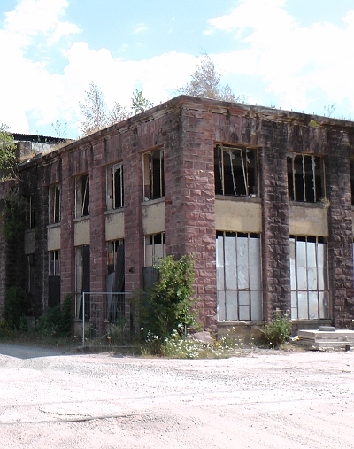 Das Werk 1976 geschlossen, seither weitgehend ohne Nutzung, mittlerweile der Innenausstattung beraubt und im Verfall begriffen. Das Eingangsgebäude am Ende eines kurzen, von Bäumen begleiteten Zufahrtsweges von der Eurener Straße, am Eingang zum ehemaligen Betriebsgelände in einem barockisierenden Heimatstil gestaltet: Der Eingang selber triumphbogenartig mit drei Durchgängen, wobei der mittlere ein eigenes Walmdach trägt, zu beiden Seiten anschließend zwei annähernd gleich gestaltete Breitgiebelbauten mit hohen Mansarddächern und anschließenden Flügelbauten, hier lagen Verwaltungsräume, Sozial- und Waschräume, auf der Außenseite links als Dreiviertelrund auskragend und ganz in bossiertem roten Sandstein verkleidet eine Pförtnerloge. Sandsteingerahmte rundbogige Fensterrahmungen mit Schlusssteinen.