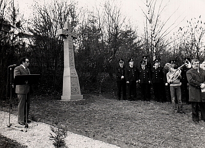 Am Palmsonntag, den 30. März 1980 wurde das Kreuz als markantes Zeichen für die letzte Ruhestätte der Oberbilliger unter Beteiligung der Ortsvereine und der Dorfgemeinschaft eingeweiht. Bild 6 -ein Foto von der Einweihung- zeigt das neue Friedhofskreuz, davor der damalige Ortsbürgermeister Johann Birringer bei seiner Ansprache. [1]