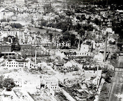 [4] Zerstörung durch den Bombenangriff am 19. 12. 1944, Luftaufnahme eines amerikanischen Aufklärers im Frühjahr 1945.