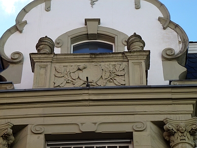 Späthistoristisches Doppelwohnhaus 2/2a mit Mansarddach, Neurenaissance- und Jugendstilmotive, bezeichnet 1901; Ausstattung. [1]
