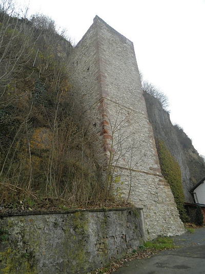 Der Turm liegt im Zentrum der Ansiedlung, bestehend aus Stadt und Burg. Beide Teile bildeten eine Einheit, die den gemeinsamen Namen Gerhardstein trug. Wahrscheinlich versorgte hier eine Quelle oder ein Brunnen oder (später) der Wasserturm auch die Burgleute, die sich ab Ende des 13. Jahrhunderts am Fuße der Burg ansiedelten. Diese zentrale Lage weist auch darauf hin, dass der Graf als Stadt- und Burgherr die wichtige Wasserversorgung nur mit Hilfe der Bürger sicherstellen konnte.