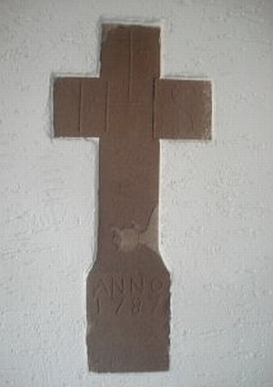 Im Vorraum der Leichenhalle zwei Grabkreuze, 1787. [1]