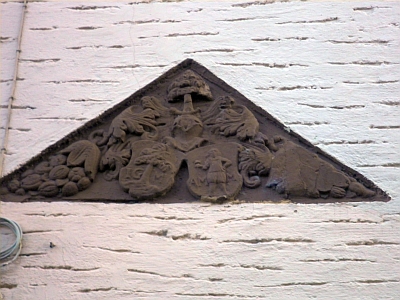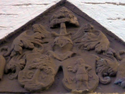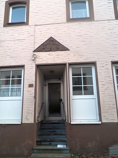 [...] Ganz rechts im ersten Haus wohnte die Familie Fisch, sie betrieben während des Krieges ein Obst - und Fischgeschäft. Leider wurde das Haus zerstört, ist nach dem Krieg wieder aufgebaut worden, es trägt über der Eingangstür jedoch wieder das alte Familienwappen in Stein gehauen, das man wohl in den Trümmern fand. [1]