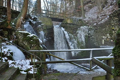 Treppen von Natursteinen führen zu ihm hinab. Pfade durchziehen das stets feuchte Tal. Weiter unten ist die Albachschlucht erweitert. Dort stürzt das Wasser abermals als Wasserfall herab. Das Ahlbachtal wird wegen seiner Schönheit und wegen des kühlen Aufenthaltes im Sommer von Bitburg aus fleißig besucht. [1]