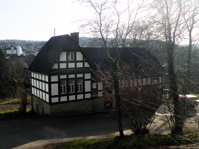 Die königlich-preußischen Forsthäuser wurden im gleichen bewährten Baustil errichtet, so dass bei einer Versetzung, die Beamten die gleichen Zuschnitte der Wohnung vorfanden, in die alle vorhandenen Möbel passten. Das Anwesen wurde für Eifelverhältnisse recht luxuriös errichtet. Wie bei der gleich alten Erlöserkirche setzen die Preußen auch hier ein Zeichen. Im Erdgeschoss war das Büro der Oberförsterei, die Zentralheizung (damals mit Kohle), ein Keller für den Oberförster und darunter auch noch ein kleiner Weinkeller (wurde bei der Renovierung 2004/05 verfüllt). Im Erd- und Obergeschoss war die Wohnung für den Oberförster und seine Familie. In der Dachmansarde war das Hausmädchen untergebracht. Diese Mansarde war übrigens nicht zu beheizen; die Eifeler Mädchen waren eben zäh – oder sollten sich durch Arbeit warm halten. Neben dem Gebäude steht das Kutscherhaus mit einer kleinen Wohnung für den Kutscher, Pferdestall und Remise für zwei Kutschen.