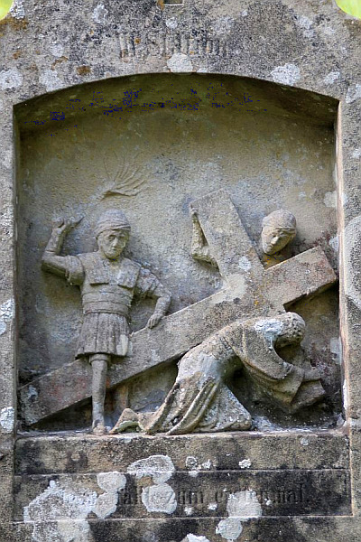 Die 14 Stationen des Kreuzweges, die der Wißmansdorfer Bildhauer Franz-Josef Leisen 1931 schuf, haben eine hohe Kunsthandwerkliche Qualität. Der Bedeutung der zwölften Station wird durch ihre Größe Rechnung getragen. Am Beginn des Kreuzweges steht eine Engelsfigur aus dem 19. Jahrhundert von einem Grabmal. Der Sockel ist nicht zugehörig. [1]