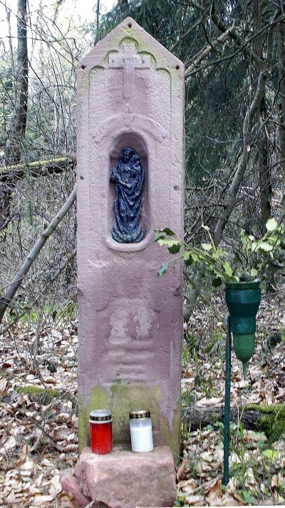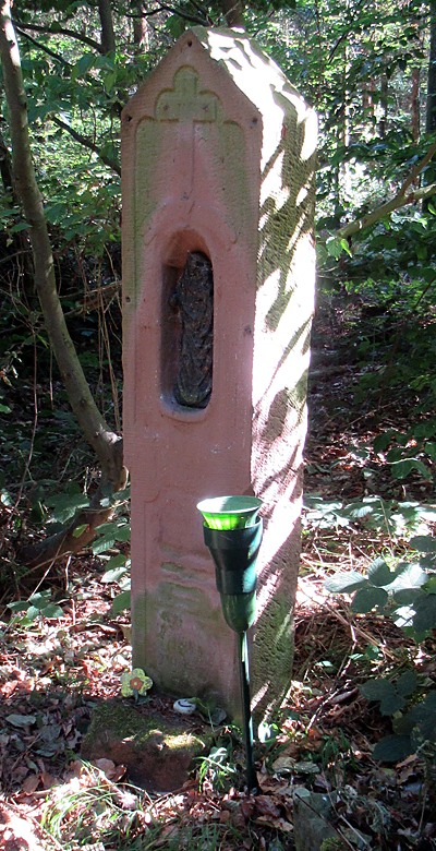 Südöstlich der Ortslage am alten Weg nach Föhren und an der Gemarkungsgrenze: Wegekreuz; Nischenstele, bezeichnet 1859. [1]