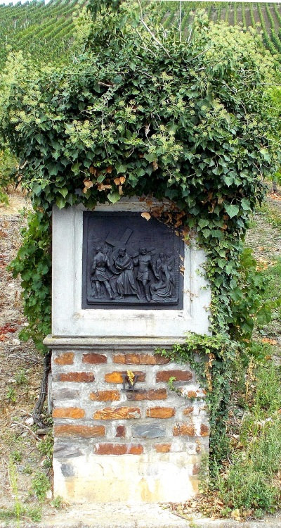 Nördlich der Ortslage an einem Weinbergsweg: Kreuzweg; 12 Stationsbilder, gusseiserne Relieftafeln, um 1860/70. [1]