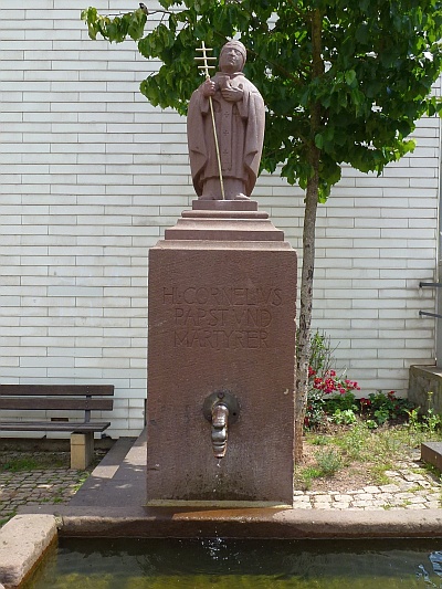 Die Statue des Papstes und Märtyrers Cornelius († 253) erinnert an die 1960 abgerissene Cornelius-Kapelle, die an dieser Stelle stand. Geblieben sind lediglich die drei alten treppenartig angeordneten Wassertröge aus Sandstein, die an die südliche Außenwand der Kapelle angelehnt waren. Heute wie damals speist jeweils der höhere den tiefer gelegenen Trog. Bis 1905, als der Vorort an das städtische Wassernetz angeschlossen wurde, versorgte der "Boor" Kürenz mit seinem frischen Quellwasser. [2]