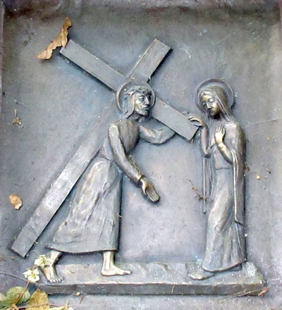 Kreuzweg, der vom Nordrand des alten Ortes, von der Heidepforte am Ende der Fröhlicherstraße, über den Heidepfad den Heideberg hinaufführt. Der Kreuzweg in den 1860er Jahren in Nachfolge der spätestens seit dem 18. Jahrhundert bezeugten Fußfälle angelegt, die heutigen Bildtafeln von 1976 in ältere Sandsteinstelen integriert. [1]