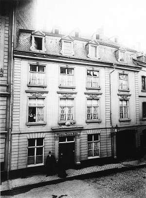 Das Gebäude wurde um das Jahr 1812 von dem Gerber Thomas Varain wohl durch einen Umbau in der Fahrstraße zwischen der Neustraße und dem Theater, etwa an Stelle des heutigen Sinn-Neubaues in der nebenstehenden Form erstellt.
