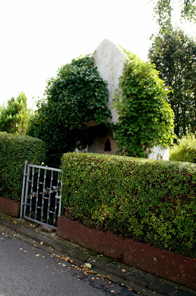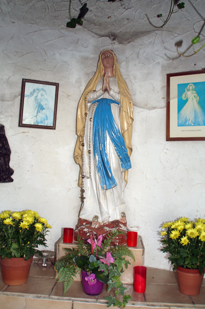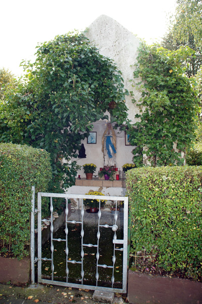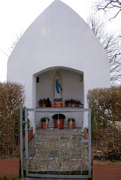 Dieses Heiligenhäuschen, das in seiner äußeren Form völlig von den herkömmlichen Kapellchen abweicht, ließ Familie Bernhard Bach 1954 nach einer Pilgerreise nach Lourdes erbauen. [1]