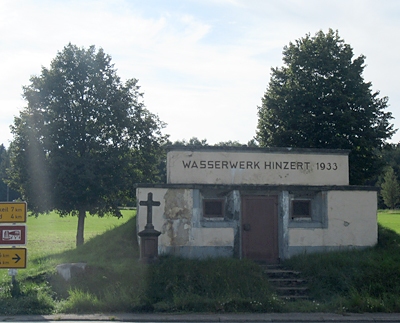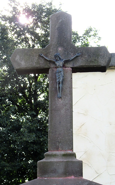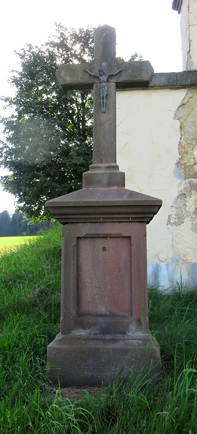 Sandsteinkreuz, Anfang 1930 aufgestellt von der Familie Treitz aus Hinzert. [...] Bis vor wenigen Jahren hatte es Tafel mit Inschrift, die nicht mehr vorhanden ist. [1]