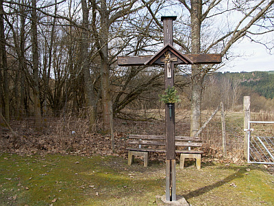 Ursprünglich trug es die Inschrift I K I H - Im Kreuz ist Heil. Errichtet wurde es von den Eltern eines Soldaten, der im 2. Weltkrieg vermist wurde. [...] Nachdem das Kreuz einige Zeit verfallen war, wurde im Jahre 1991 durch die Gemeinde ein neues Kreuz aufgestellt. [1]
