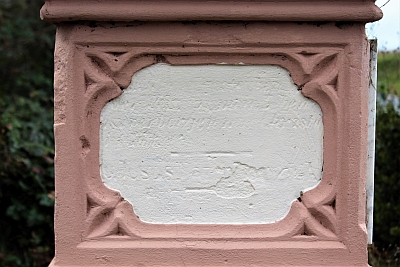 Dieses Kreuz wurde von Fräulein Gertrud Thölkes im Jahr 1960 aufgestellt. Inschrift: