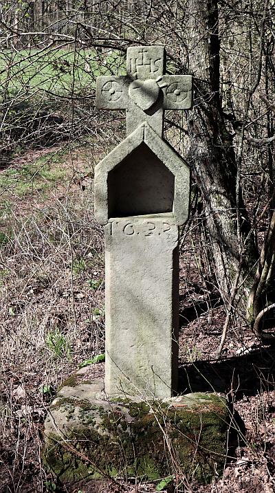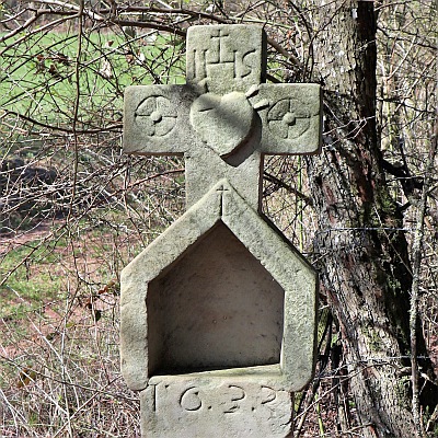 Südwestlich der Ortslage. Am Waldrand auf einer Anhöhe stehendes, 1632 datiertes Kreuz in einem Werkstück aus hellem Sandstein gearbeitet. Über breitem Setzstein geht der massige Pfeilerschaft mit Datierung und Pflugschar-Relief in den sich verbreiternden, tiefen Nischenaufsatz über. Aus dem spitzbogigen Abschluss wächst das Balkenkreuz mit scheibenförmigem Blütenschmuck an den Kreuzbalken, IHS-Zeichen am Kreuzstamm und Herzrelief im Zentrum. Das Nischenkreuz ist Zeugnis für einen in Butzweiler mehrfach vertretenen Kreuztyp des 17. Jahrhundert, der hier wohl im Zusammenhang mit dem Dreißigjährigen Krieg steht. [2]