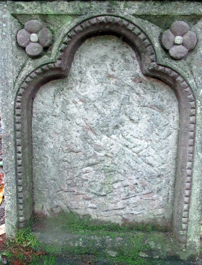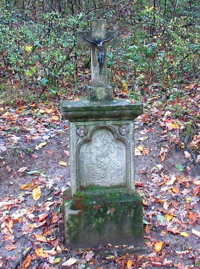 Pfeilerschaftkreuz, Pfeiler mit Blumenornamenten und Verzierungen versehen. Abschlußkreuz mit gusseisernem Korpus (in der Mitte zerbrochen). [1]