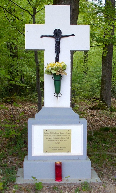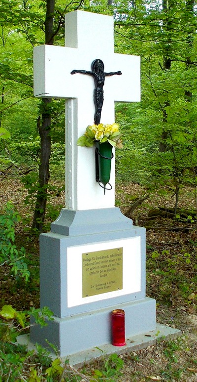 Renoviertes Wegekreuz, am Waldesrand gelegen.