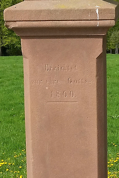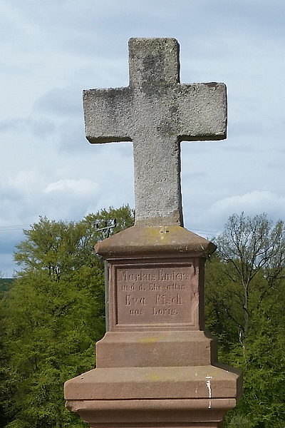 Das Kreuz stand vormals im Gewann 'Auf dem vordersten Bälk' (lon: 6.620347 lat: 49.79833), es wurde im Zuge des Neubaus der Kreisstraße 26 um ein paar Meter nach Norden versetzt. Es steht nun gleich neben der kleinen Kapelle.