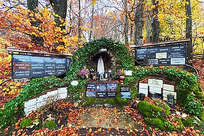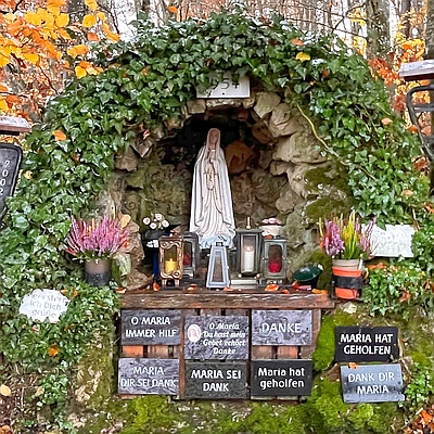 Mariengrotte, zu der auch in den Sommermonaten häufiger ein Sorgenrosenkranz "pilgert". [1]