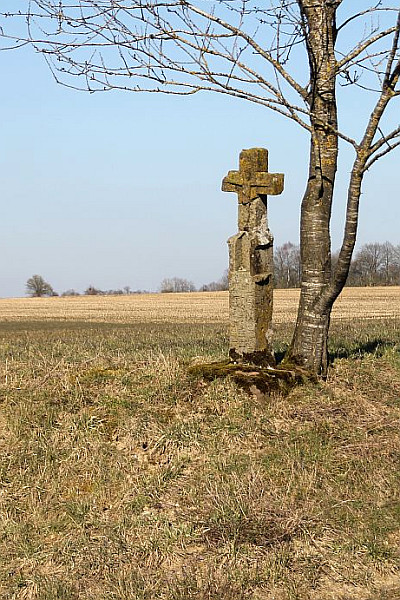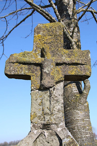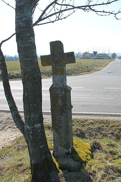 Nischenkreuz von 1623; trotz der ziemlich groben Ausführung ist das Vorbild der qualitätvolleren Kyllburger Kreuze deutlich zu erkennen. Der Schaft, dessen unteres Ende fehlt, ganz von der teilweise schaftparallelen, unvollständig erhaltenen Inschrift bedeckt, eindeutig lesbar nur der Name HANZ VON WILTSAECKER (die letzten fünf Buchstaben fehlen); zwischen den Schriftzeilen Symbole des Zimmerhandwerks (Klammer und Winkel). Das Nischendach und das Abschlußkreuz beschädigt, der Korpus in ganz schematischer Steinmetzarbeit. [1]