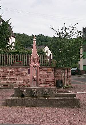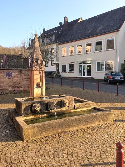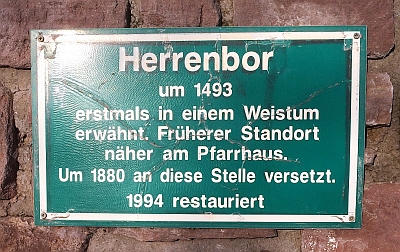 Spätgotischer Brunnenstock des Dorfbrunnens, der 1951 mit einer Laube überbaut wurde und dessen teils erneuerte Steintröge neu angeordnet wurden. Der Brunnenstock ist aufwendig als Sandstein-Fiale gearbeitet, dessen Pyramidenhelm an den Kanten krabbenbesetzt ist. Am Übergang zum Schaft bogenförmig verflochtene Maßwerkkrone. Am Wasserausfluß Fratze. Der Herrenbor, wohl um 1500 ist der älteste erhaltene Dorfbrunnen im Landkreis Trier-Saarburg. [1]